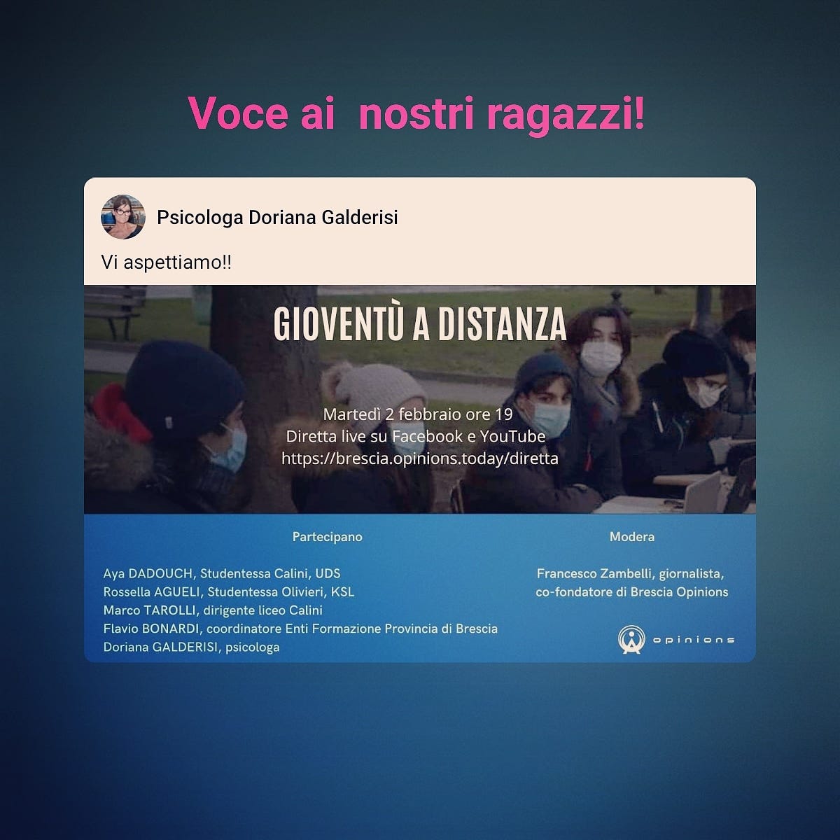 In diretta.. a più voci.. Vi aspettiamo numerosi!! ... Parleremo di scuola, giovani, iniziative.. il tutto calato nella realtà di questo periodo griffato Covid - 19.Doriana GalderisiFeb 02, 2021Share
