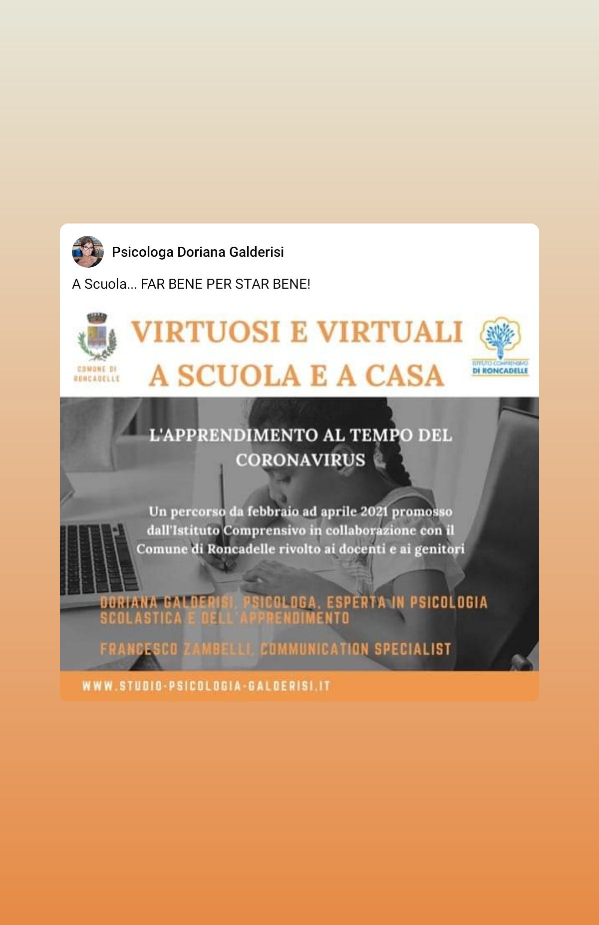 VIRTUOSI e VIRTUALI... Genitori, Studenti ed Insegnanti nella Scuola al tempo del Coronavirus Pronto a partire l'importante progetto dell 'Istituto Comprensivo bresciano di RONCADELLE Doriana GalderisiFeb 01, 20211Share